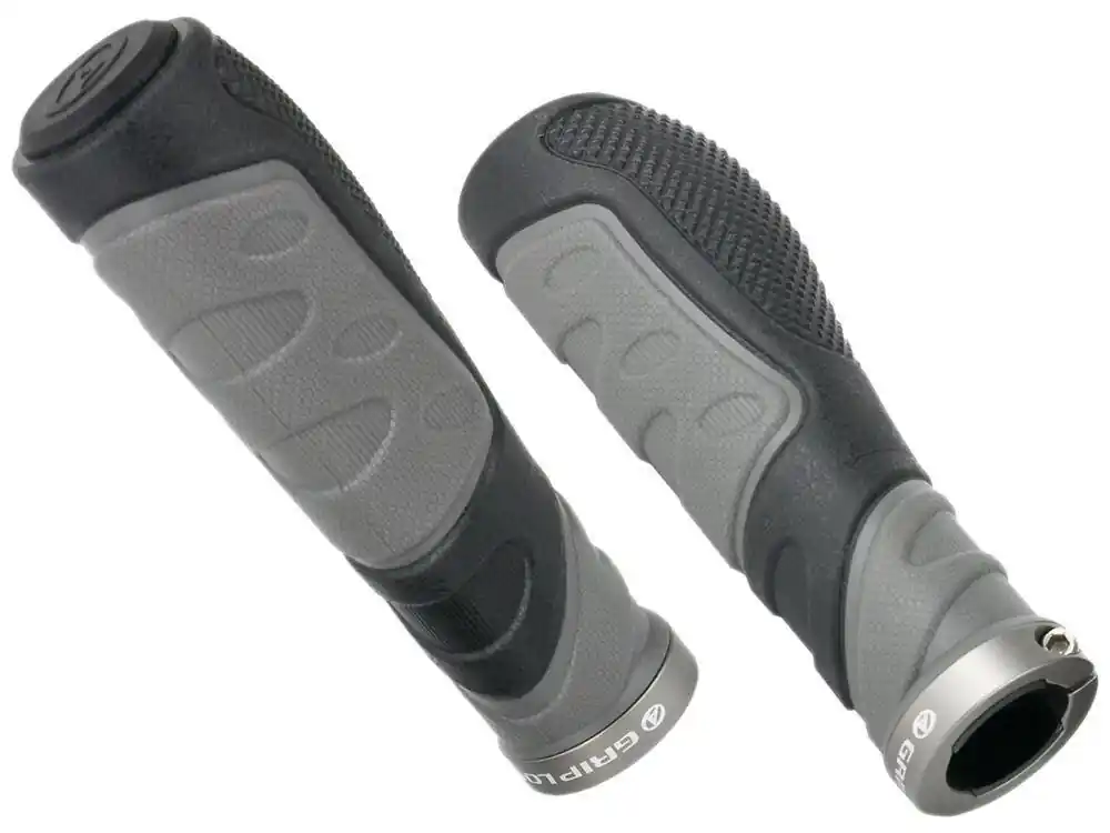 Chwyty Author Griplock Ergo 20 130mm szaro-czarne Chwyty kierownicy o ergonomicznym kształcie wykonane z dwóch rodzajów gumy, dzięki czemu są dużo trwalsze i wygodniejsze od standardowych. Osadzone na sztywnej tulejce z tworzywa sztucznego. Skręcane z jednej strony przy pomocy aluminiowego pierścienia, co zapobiega obracaniu się chwytów na kierownicy.Ergonomiczny kształt pozwala na wygodną, naturalną pozycję dłoni.Faktura chwytów dostarcza odpowiedniej przyczepności oraz wygody podczas jazdy. W komplecie korki z tworzywa sztucznego na końce kierownicy.Chwyty pasują na kierownicę o średnicy 22,2 mm Cechy produkty Producent: AuthorModel: AGR Ergo 20 Długość: 130 mmKolor: szaro-czarneWaga:~ 170 g / para