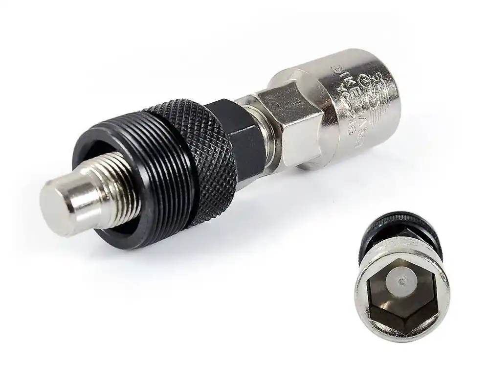 Ściągacz Bike Hand YC-216 do korb (kwadrat) Narzędzie służy do łatwego demontażu ramion mechanizmu korbowego nasadzonych na oś suportu w rowerze.Pasuje do większości dostępnych na rynku mechanizmów korbowych mocowanych do osi w standardzie „kwadrat”.Do ściągacza potrzebny jest klucz 15 mm, którym można wkręcić i wykręcić tuleje kontrującą oraz trzpień wyciskający korbę. Jeden z końców ściągacza może również posłużyć jako klucz nasadowy 14 mm, do odkręcania śrub mocujących ramiona mechanizmu korbowego do suportu.Narzędzie jest bardzo kompaktowe i umożliwia skuteczne zdemontowanie nawet bardzo zastanych mechanizmów korbowych. Cechy produktu Producent: Bike HandModel: YC-216Rodzaj korby: kwadratPod klucz: 15 mm
