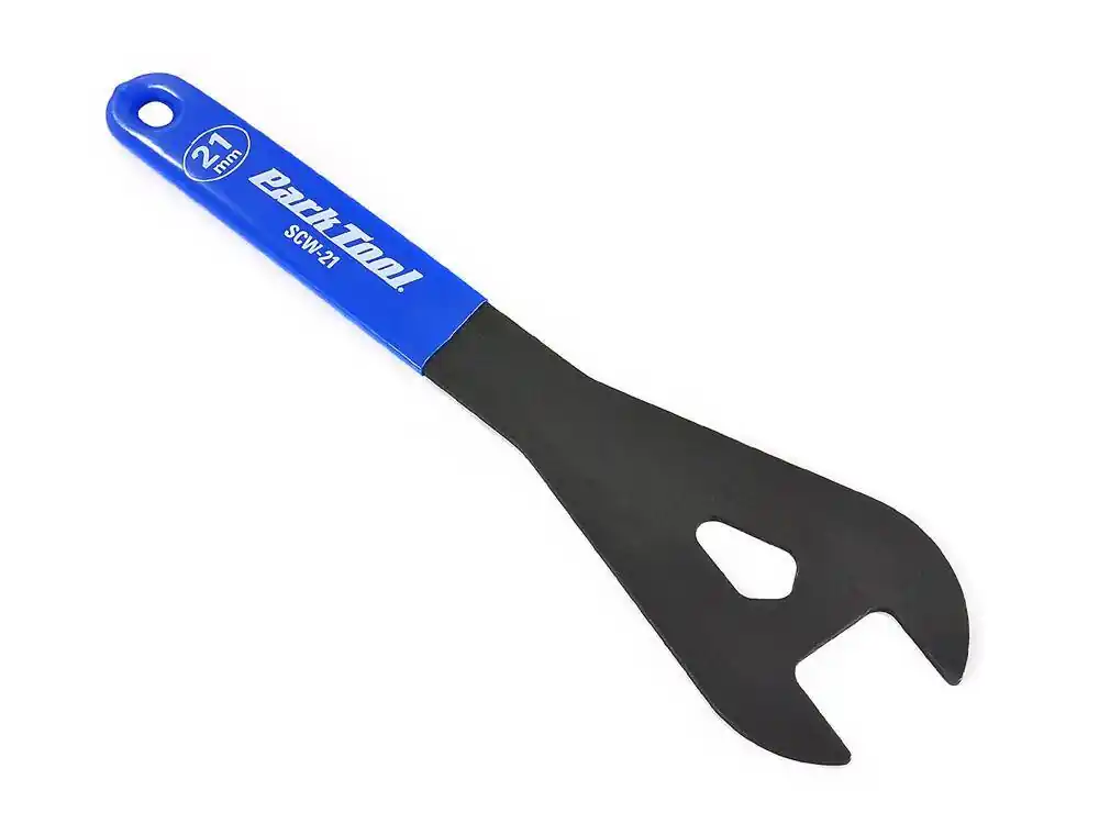 Klucz Park Tool SCW-21 do konusów (stożków) 21 mm   Narzędzia firmy Park Tool są niezrównane pod względem jakości i wydajności.   Specjalna konstrukcja w kształcie litery „Y” sprawia, że narzędzię zyskuje na wytrzymałości i trwałości. Wykończone za pomocą fosforanu, który wykorzystywany jest w przemyśle wojskowym. Wystarczająco cienki, aby można było używać na najwęższych stożkach. Długa rączka pokryta niebieską gumą zapewnia wygodę użytkowania. Duży napis z rozmiarem klucza ułatwia pracę w serwisie. Posiada otwór umożliwiający zawieszenie na ścianie. Dostępne w różnych rozmiarach (13 – 28 mm).  Cechy produktu  Marka: Park Tool Model: SCW-21 Rozmiar: 21 mm Waga: ~ 86 g   O producencie:  Firma Park Tool powstała w roku 1963 w ST. Paul w Stanach Zjednoczonych. Obecnie Park Tool jest największym na świecie producentów narzędzi i przyrządów służących do serwisowania rowerów. Firma stale inwestuje w prace rozwojowe i nowoczesny zautomatyzowany park maszynowy. Mimo to pewne prace wykonywane są nadal ręcznie w celu zagwarantowania starannego wykończenia i zachowania najwyższej jakości produktów. Park Tool podąża za zmianami w konstrukcjach rowerów modernizując i projektując nowe opatentowane narzędzie wysoko oceniane przez profesjonalnych mechaników i hobbystów.
