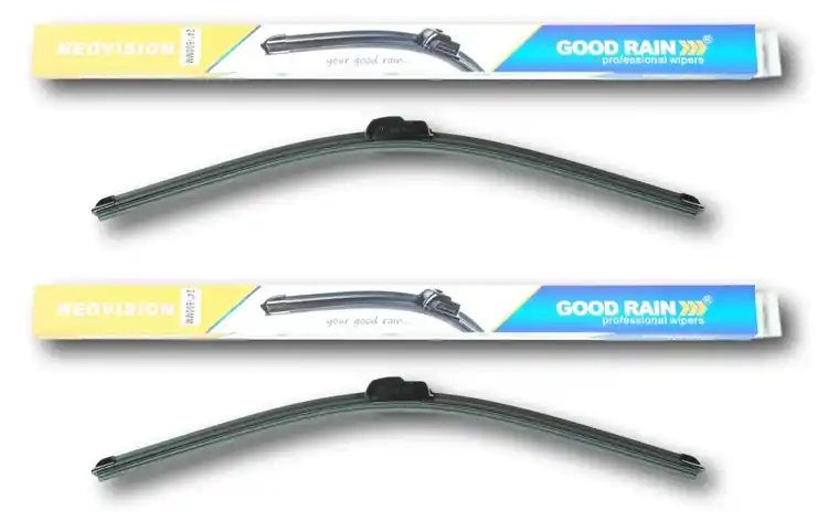 Nowe wycieraczki ; zapakowane woryginalne opakowanie producenta. Cena zakupu dotyczy 1kompletu (stronakierowcy i pasażera).Wycieraczki Good Rain na przednią szybęsamochodu posiadają konstrukcję bezprzegubową. Guma w wycieraczkachpokryta jest specjalną powłoką, dzięki, której szyba jest bardzo dobrzeczyszczona. Na całej długości wycieraczki znajduje się spojler, któregozadaniem jest dociskanie jej do powierzchni szyby, nawet przy dużychprędkościach. Duży wpływ na dobre przyleganie wycieraczek do szyby samochodu marównież zastosowana w ich konstrukcji specjalna prowadnica, dzięki, której siłanacisku jest regularnie rozłożona na całej długości pióra wycieraczki. Stałynadzór nad procesem produkcji oraz wysokiej jakości produkty użytedo ich wykonania sprawiają , że wycieraczki te, profesjonalnie spisują się wkażdych warunkach atmosferycznych. Zalety wycieraczek Good Rain:- bardzo łatwy montażna ramiona- wysoka jakość za przystępną cenę- skuteczne wycieranie szyby- zmniejszenie szumu powietrza poprzez bardziejopływowy kształt- zaawansowana technologia i nowoczesnywyglądJak dbać o wycieraczki:- pamiętaj, aby dbać o gumę wycieraczkiusuwając z niej brud, owady itp., które osiadły podczas jej pracy (wykorzystaćmożna do tego łagodny detergent); zapominanie o usuwaniu zanieczyszczeń, możedoprowadzić do uszkodzenia gumy wycieraczki- nigdy nie używaj wycieraczek, gdyszyba jest sucha; tarcie gumy po suchej szybie może doprowadzić doszybkiego jej zużycia- jeżeli wycieraczka na szybiepodskakuje, może to być oznaką, że ramię wycieraczki jest skrzywione; w takimprzypadku należy dokonać jego regulacji- jeżeli planujesz pozostawieniesamochodu na słońcu przez kilka dni, ustaw wycieraczki tak, aby niestykały się z szybą- po wizycie na myjni, pamiętaj, abyzawsze dokładnie oczyścić szybę, ponieważ znajdujący się na niej wosk, możepowodować przeskakiwanie wycieraczki- pamiętaj również,aby nie uruchamiać wycieraczek na zamarzniętej szybie; może to bowiemdoprowadzić do ich uszkodzenia lub oderwania gumy od mocowania.