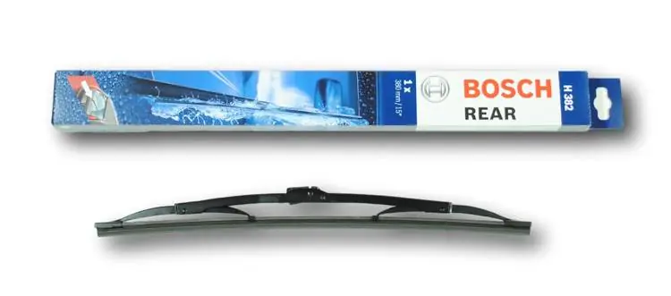 Nowa wycieraczka – zapakowana w oryginalne opakowanie producenta – cena zakupu dotyczy 1sztuki.Bardzo ważna jest również widoczność w tylnej szybie samochodu. Należy pamiętać więc także o wycieraczce tylnej. Wycieraczki tylnej szyby Bosch Twin posiadają konstrukcję przegubową z metalowym stelażem. W konstrukcji pióra wycieraczki zastosowano 2 rodzaje gumy. Na górze znajduje się część miękka odpowiadająca za cichą pracę, natomiast na dole twarda, która ma za zadanie precyzyjne czyszczenie szyby ze śniegu, wody itp. Dodatkowo jest ona pokryta specjalną powłoką, powodującą lepszy poślizg na szybie, aby siła tarcia była jak najmniejsza.Jak dbać o wycieraczki:- pamiętaj, aby dbać o gumę wycieraczki usuwając z niej brud, owady itp., które osiadły podczas jej pracy (wykorzystać można do tego łagodny detergent); zapominanie o usuwaniu zanieczyszczeń, może doprowadzić do uszkodzenia gumy wycieraczki- nigdy nie używaj wycieraczek, gdy szyba jest sucha; tarcie gumy po suchej szybie może doprowadzić do szybkiego jej zużycia- jeżeli wycieraczka na szybie podskakuje, może to być oznaką, że ramię wycieraczki jest skrzywione; w takim przypadku należy dokonać jego regulacji- jeżeli planujesz pozostawienie samochodu na słońcu przez kilka dni, ustaw wycieraczki tak, aby nie stykały się z szybą- po wizycie na myjni, pamiętaj, aby zawsze dokładnie oczyścić szybę, ponieważ znajdujący się na niej wosk, może powodować przeskakiwanie wycieraczki- pamiętaj również, aby nie uruchamiać wycieraczek na zamarzniętej szybie; może to bowiem doprowadzić do ich uszkodzenia lub oderwania gumy od mocowania.Czy wiesz że:- pierwsza wycieraczka wprowadzona została przez Boscha w okresie międzywojennym w 1926r. i napędzana była silnikiem elektrycznym- pierwszą wycieraczkę bezprzegubową – Bosch wprowadził do produkcji w 1999r.- 750 000 cykli oczyszczania! Tak wycieraczki Bosch są testowane pod kątem wytrzymałości mechanicznej- wycieraczki Bosch są przystosowane do pracy w temperaturach od -30 do +80 stopni Celsjusza.