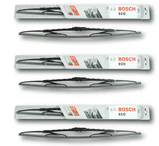Nowe wycieraczki – zapakowane w oryginalne opakowanie producenta – cena zakupu dotyczy 1- kompletu (strona kierowcy i pasażera i pasażera).Wycieraczki Bosch Eco są przeznaczone dla klientów, którzy poszukują wycieraczek w korzystnej cenie, a jednocześnie dobrych jakościowo.Konstrukcja wycieraczek Bosch Eco to sprawdzone już wcześniej rozwiązanie, a mianowicie metalowy, lakierowany szkielet z nitowanymi przegubami. Są to wycieraczki przeznaczone do montażu na mocowaniu hakowym.Pióra wycieraczki Bosch Eco to naturalna guma i grafitowa powłoka poślizgowa, dzięki której wycieranie szyby jest skuteczne nawet w niesprzyjających warunkach atmosferycznych.Zamontowany na stałe adapterQuick-Clip umożliwia łatwą i szybką wymianę wycieraczek Bosch Eco.Jak dbać o wycieraczki:- pamiętaj, aby dbać o gumę wycieraczki usuwając z niej brud, owady itp., które osiadły podczas jej pracy (wykorzystać można do tego łagodny detergent); zapominanie o usuwaniu zanieczyszczeń, może doprowadzić do uszkodzenia gumy wycieraczki- nigdy nie używaj wycieraczek, gdy szyba jest sucha; tarcie gumy po suchej szybie może doprowadzić do szybkiego jej zużycia- jeżeli wycieraczka na szybie podskakuje, może to być oznaką, że ramię wycieraczki jest skrzywione; w takim przypadku należy dokonać jego regulacji- jeżeli planujesz pozostawienie samochodu na słońcu przez kilka dni, ustaw wycieraczki tak, aby nie stykały się z szybą- po wizycie na myjni, pamiętaj, aby zawsze dokładnie oczyścić szybę, ponieważ znajdujący się na niej wosk, może powodować przeskakiwanie wycieraczki- pamiętaj również, aby nie uruchamiać wycieraczek na zamarzniętej szybie; może to bowiem doprowadzić do ich uszkodzenia lub oderwania gumy od mocowania.Czy wiesz że:- pierwsza wycieraczka wprowadzona została przez Boscha w okresie międzywojennym w 1926r. i napędzana była silnikiem elektrycznym- pierwszą wycieraczkę bezprzegubową – Bosch wprowadził do produkcji w 1999r.- 750000 cykli oczyszczania! Tak wycieraczki Bosch są testowane pod kątem wytrzymałości mechanicznej- wycieraczki Bosch są przystosowane do pracy w temperaturach od -30 do +80 stopni Celsjusza.