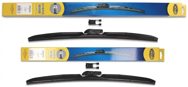 Wycieraczki są nowe – w oryginalnym opakowaniu producenta – cena zakupu dotyczy 1-kompletu (odpowiednio dobrane długości i modele wycieraczek – strona kierowcy oraz pasażera).  Wycieraczki hybrydowe Magneti Marelli wyprodukowane są z materiałów o najwyższej jakości:- guma – to ponad 50% kauczuku naturalnego z grafitową powłoką. Wewnątrz gumy znajduje się podwójna stal nierdzewna. Sztywne gumowe pióro z grafitową powłoką w wycieraczkach hybrydowych Magneti Marelli to skuteczne i dokładne wycieranie powierzchni szyby.- Spojler – materiał ABS- Złącze – materiał POMWycieraczki hybrydowe Magneti Marelli dzięki zastosowaniu materiałów najwyższej jakości oraz zaawansowanej technologii, bez problemu zastępują tradycyjne wycieraczki w starszych modelach samochodów. Wymiana wycieraczek jest łatwa i szybka.Wysokiej jakości materiał użyty w wycieraczkach hybrydowych Magneti Marelli sprawia, że są wytrzymałe, dobrze dopasowują się do powierzchni szyby, dzięki czemu ich praca jest cicha. Sprawdzają się również w niekorzystnych warunkach atmosferycznych; temperatura od – 25ºC do + 50ºC w żaden sposób nie zakłóca ich pracy.Wycieraczki hybrydowe Magneti Marelli pasują do większości modeli samochodów dzięki zastosowaniu jednego uniwersalnego adaptera, który może być montowany w czterech różnych wycieraczkach.Wycieraczki Magneti Marelli to jedne z bardziej poszukiwanych wycieraczek na świecie.