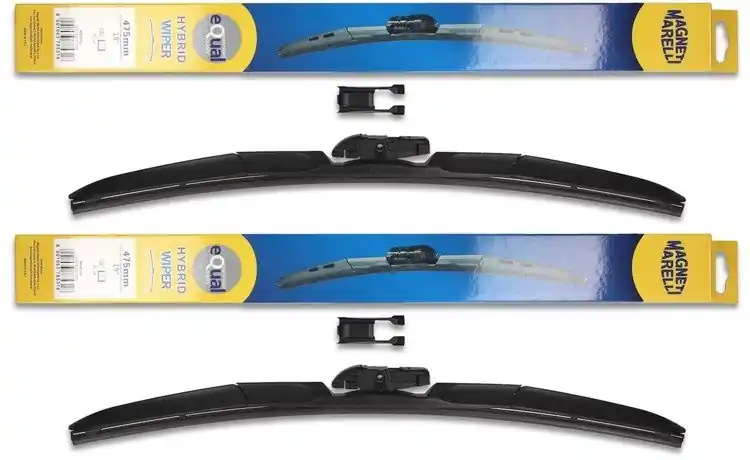 Wycieraczki są nowe – w oryginalnym opakowaniu producenta – cena zakupu dotyczy 1-kompletu (odpowiednio dobrane długości i modele wycieraczek – strona kierowcy oraz pasażera).  Wycieraczki hybrydowe Magneti Marelli wyprodukowane są z materiałów o najwyższej jakości:- guma – to ponad 50% kauczuku naturalnego z grafitową powłoką. Wewnątrz gumy znajduje się podwójna stal nierdzewna. Sztywne gumowe pióro z grafitową powłoką w wycieraczkach hybrydowych Magneti Marelli to skuteczne i dokładne wycieranie powierzchni szyby.- Spojler – materiał ABS- Złącze – materiał POMWycieraczki hybrydowe Magneti Marelli dzięki zastosowaniu materiałów najwyższej jakości oraz zaawansowanej technologii, bez problemu zastępują tradycyjne wycieraczki w starszych modelach samochodów. Wymiana wycieraczek jest łatwa i szybka.Wysokiej jakości materiał użyty w wycieraczkach hybrydowych Magneti Marelli sprawia, że są wytrzymałe, dobrze dopasowują się do powierzchni szyby, dzięki czemu ich praca jest cicha. Sprawdzają się również w niekorzystnych warunkach atmosferycznych; temperatura od – 25ºC do + 50ºC w żaden sposób nie zakłóca ich pracy.Wycieraczki hybrydowe Magneti Marelli pasują do większości modeli samochodów dzięki zastosowaniu jednego uniwersalnego adaptera, który może być montowany w czterech różnych wycieraczkach.Wycieraczki Magneti Marelli to jedne z bardziej poszukiwanych wycieraczek na świecie.